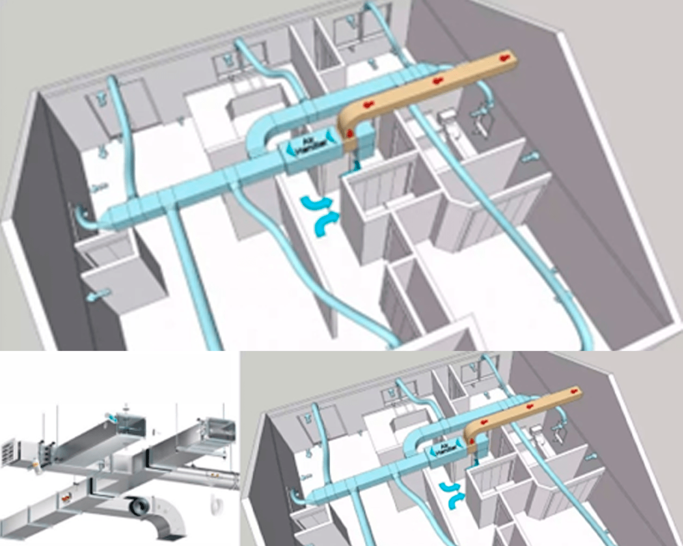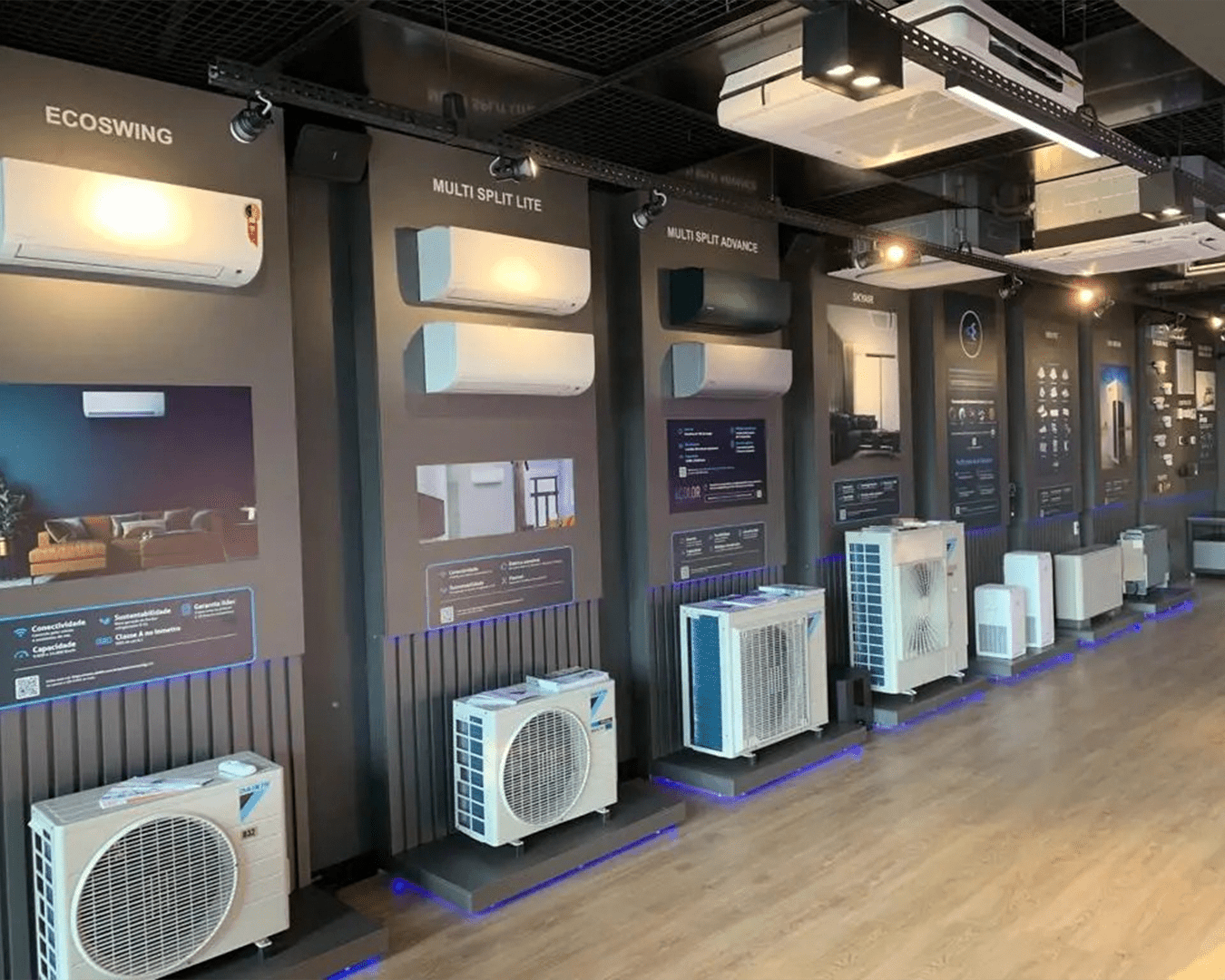 Distribuição de ar eficiente e discreta. O sistema leva e retorna o ar entre o equipamento e os ambientes, atendendo vários espaços ao mesmo tempo, com melhor distribuição e sem impactar a estética do local.